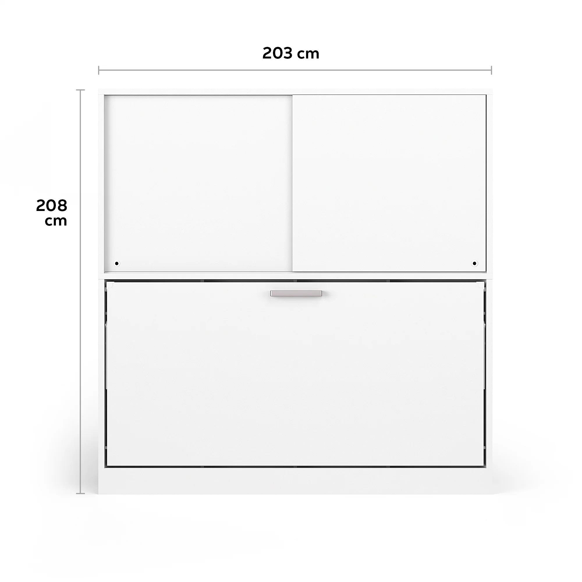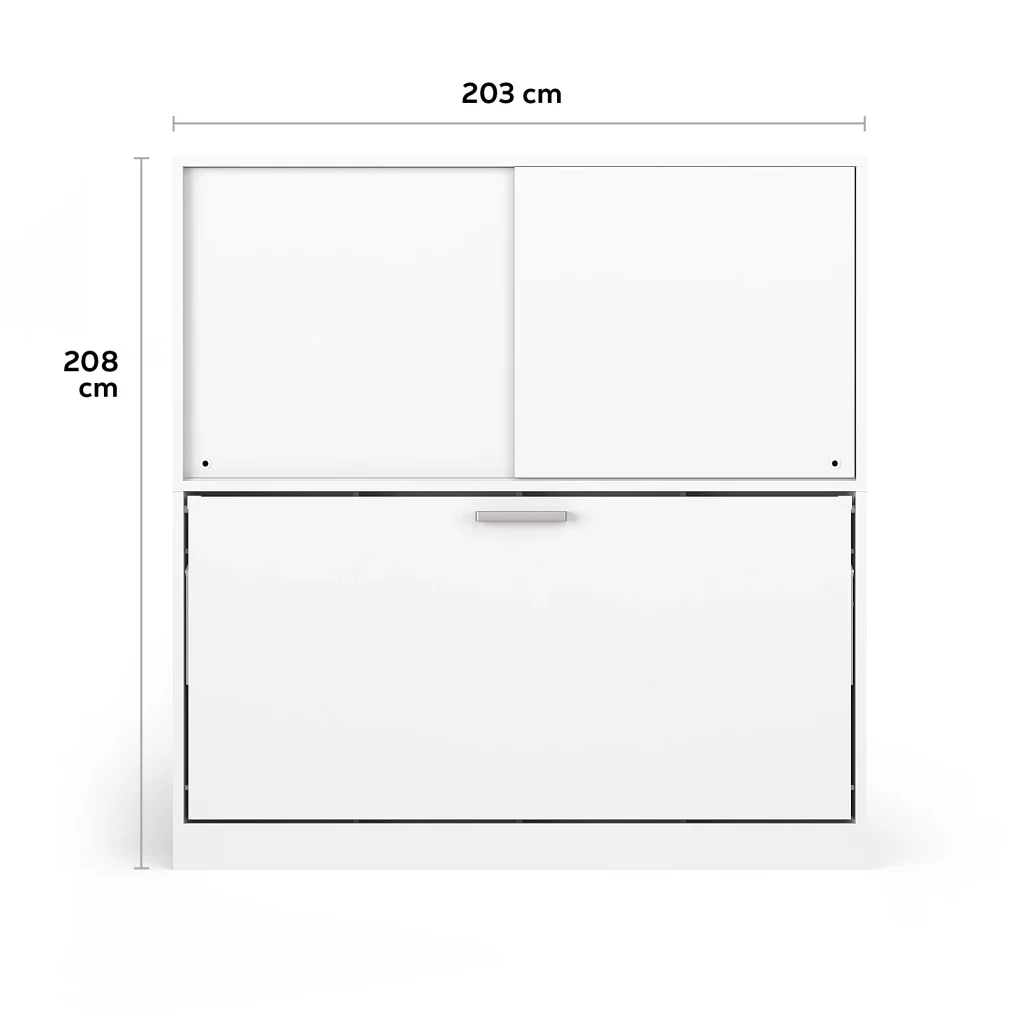 The Multimo Academy is a fully-equipped wall bed and furniture system designed to combine study and relaxation areas into one compact solution for young people and students. It offers maximum functionality while fitting into a minimal wall space (typically around 2 meters).