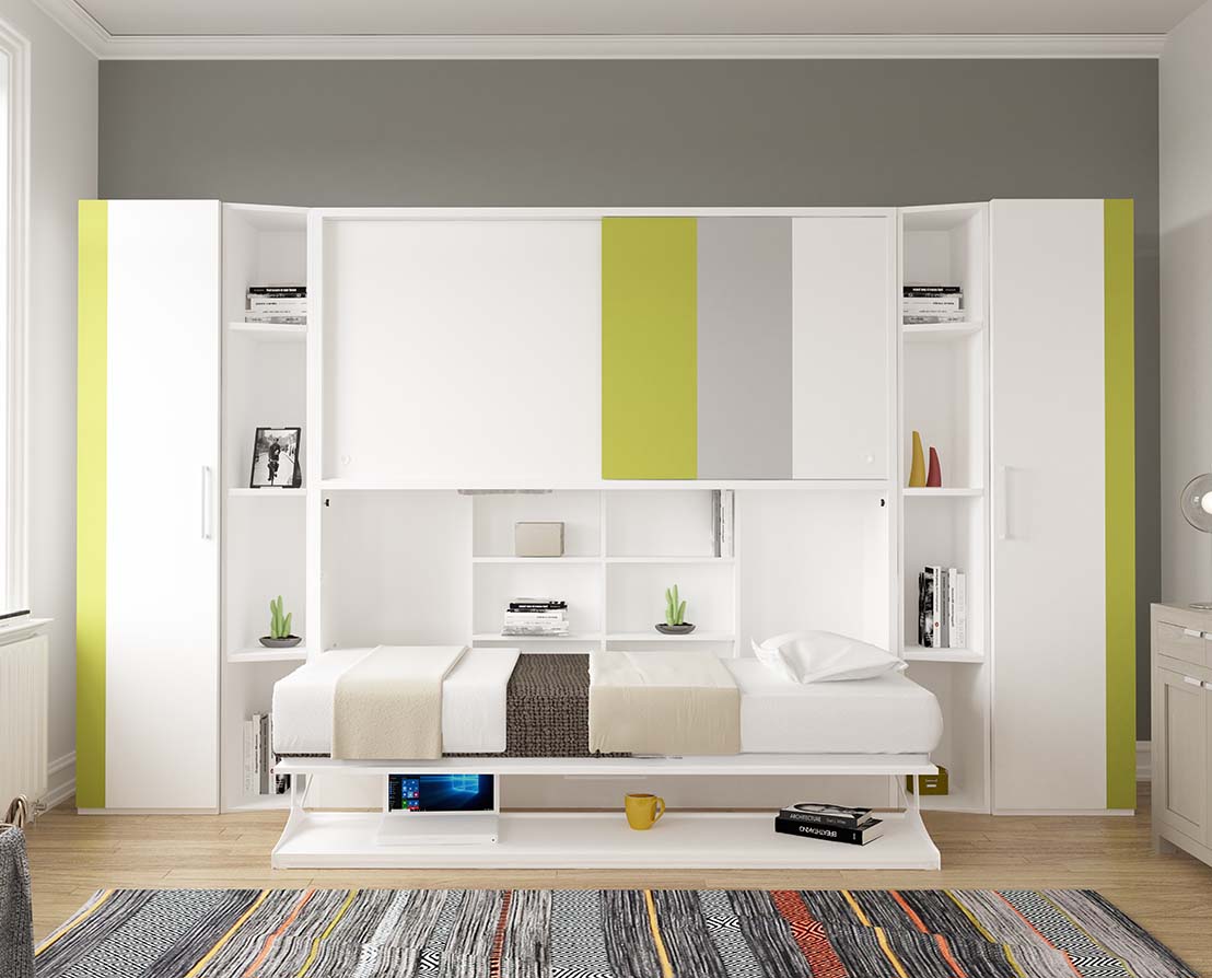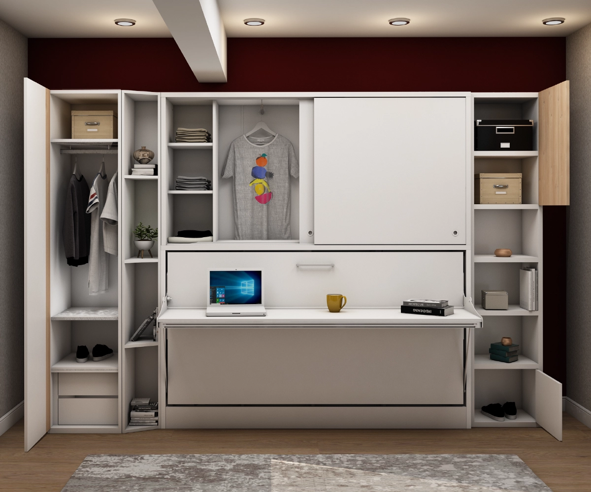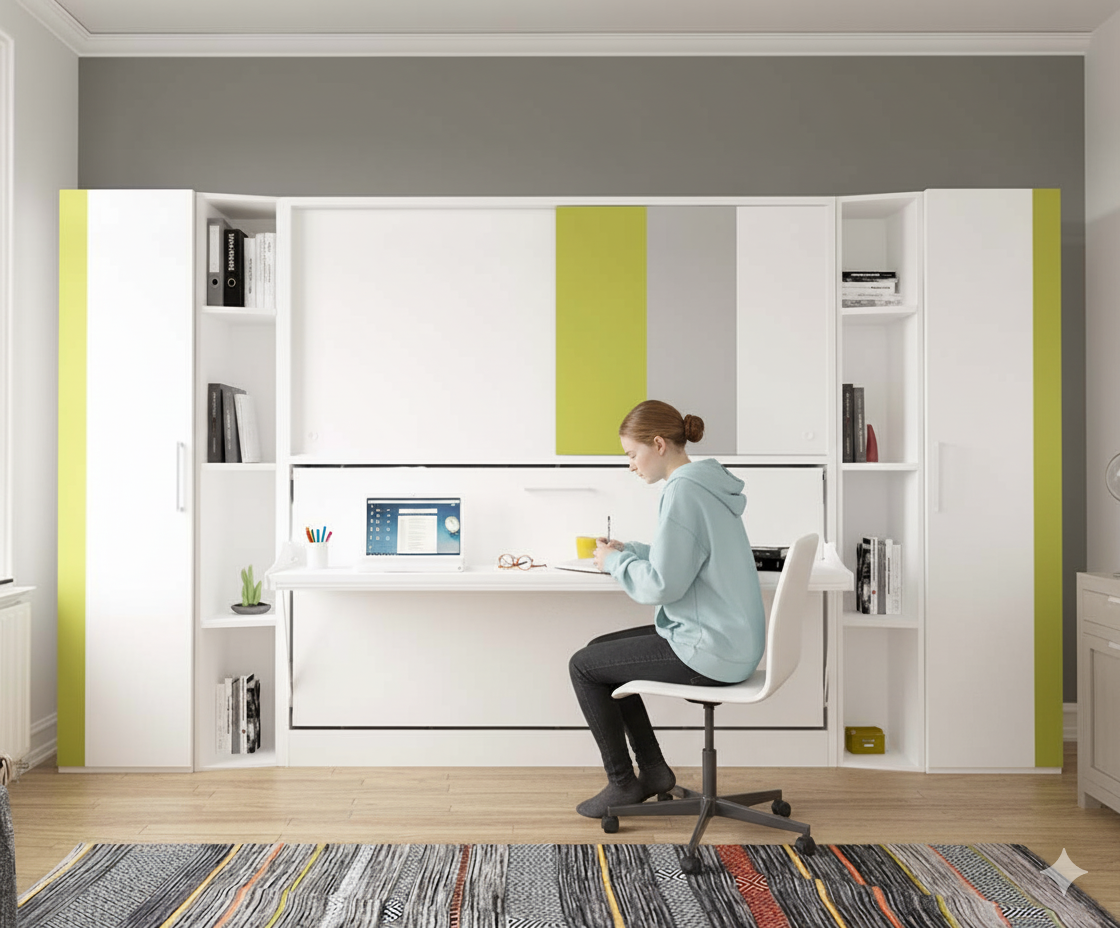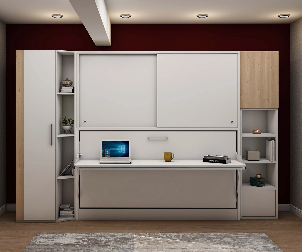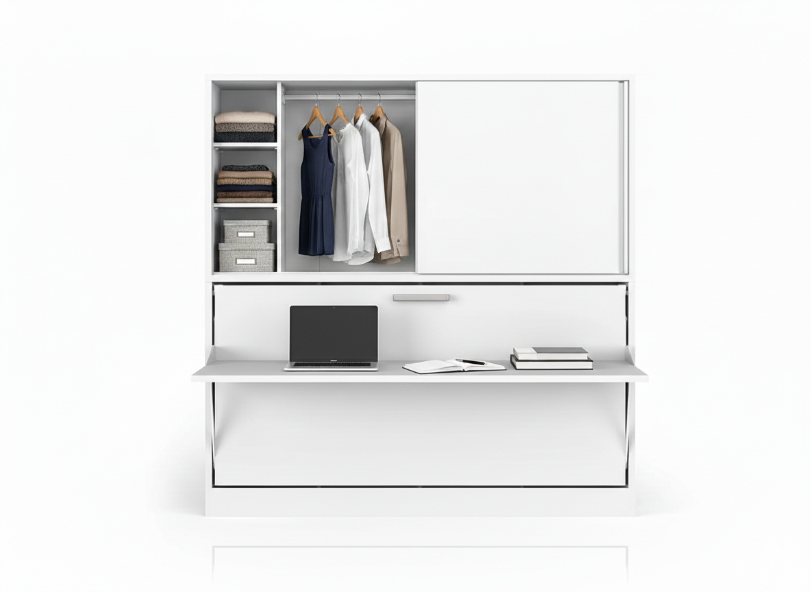 Smart transformation: Functions as a spacious desk during the day and converts into a comfortable bed at night with a single move.