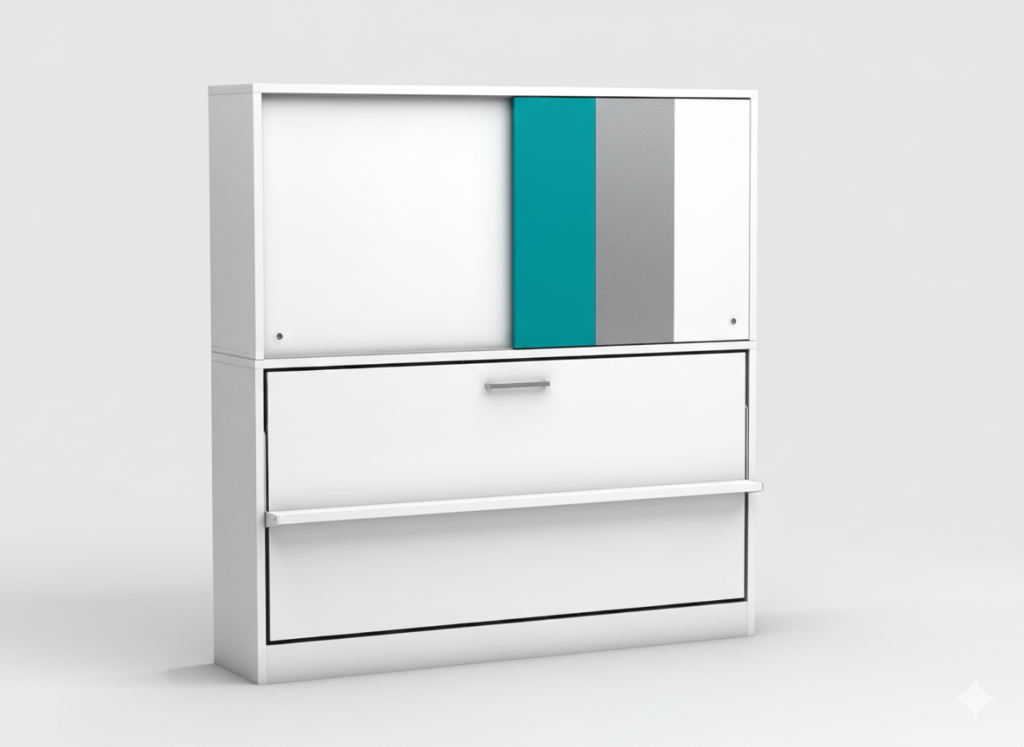 Modular Integration: Thanks to the modular structure of the Academy series, this unit can be easily combined with desk, shelving, coat rack, or wardrobe modules, transforming it into a fully equipped youth room or home office solution.