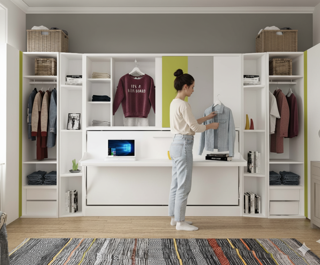 Saves space, increasing functionality in small rooms.