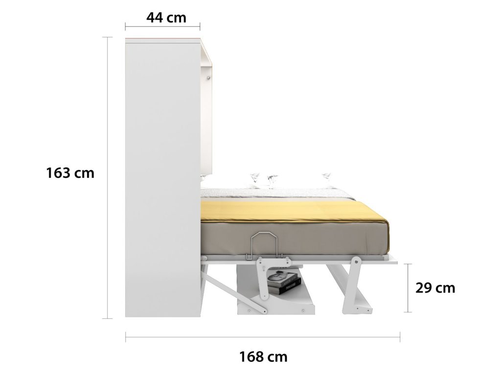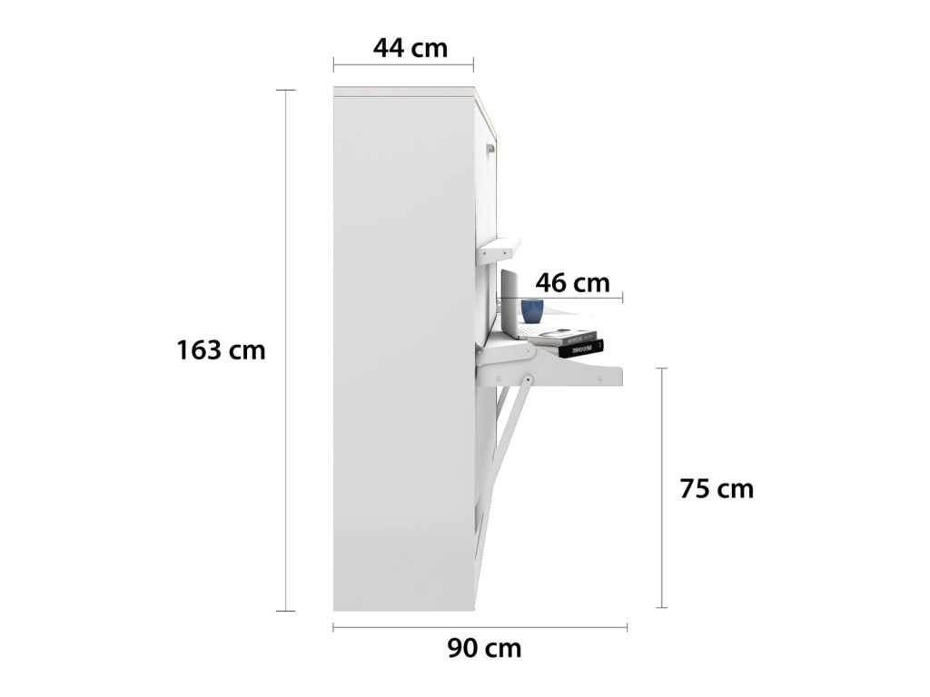 During the day, the bed folds vertically and turns into a stylish cabinet-like surface, creating a spacious and open room.