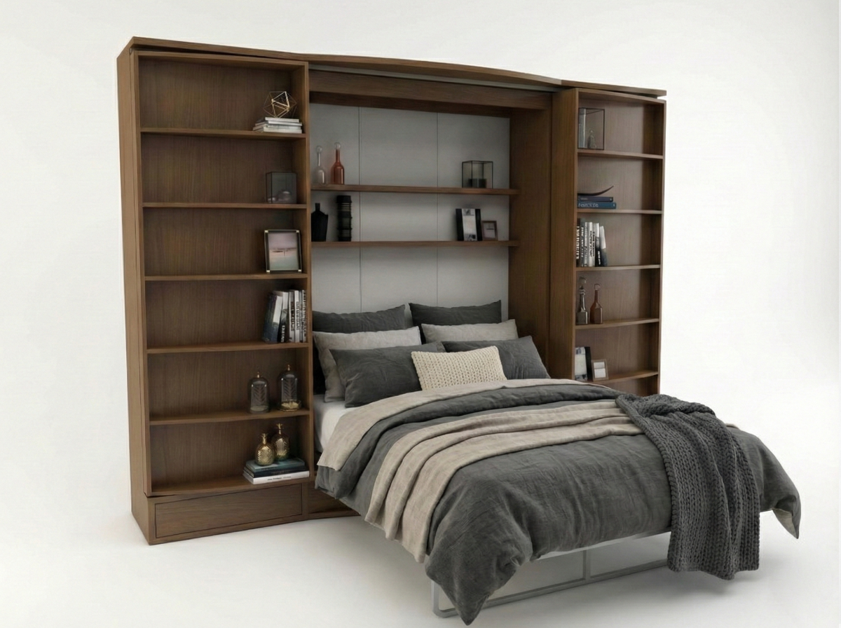 Experience the freedom of spacious living with our innovative wall beds and practical units.