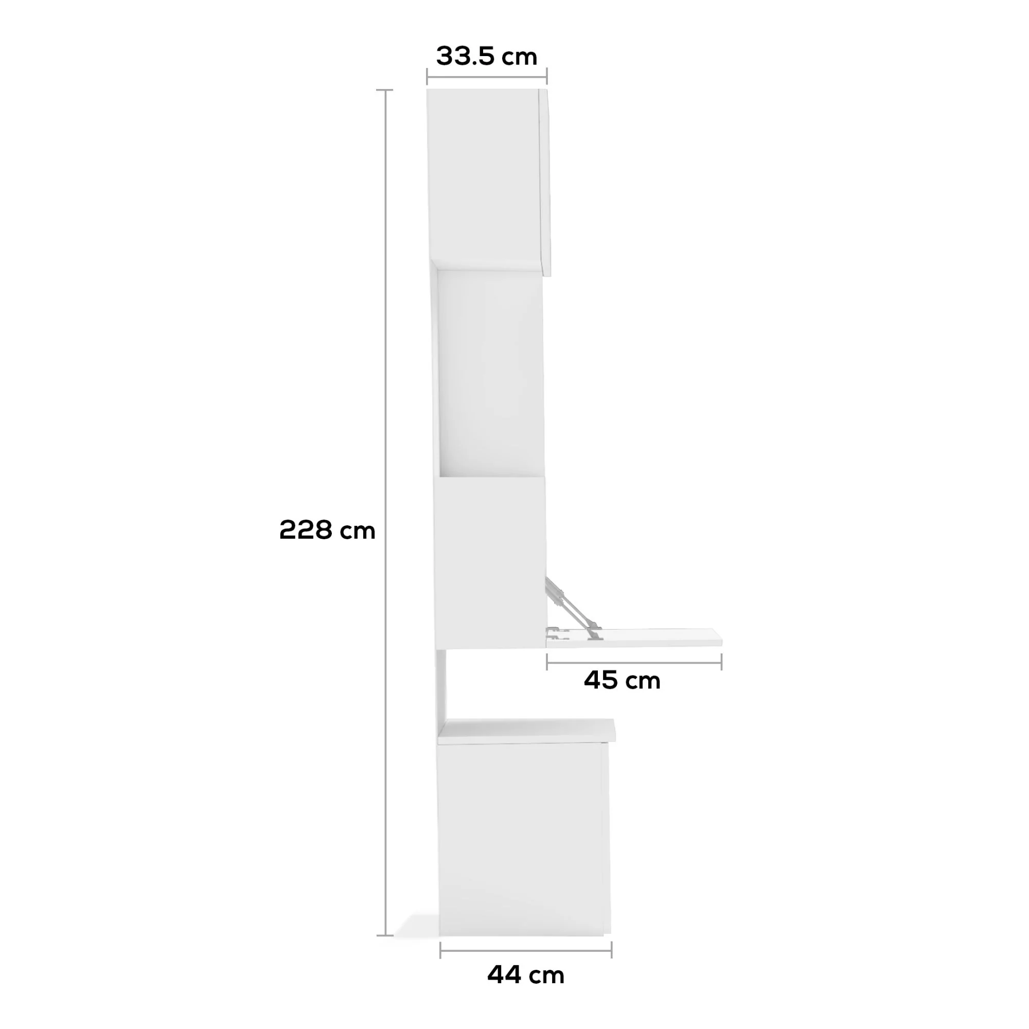 Smart Table Mechanism: The middle panel folds downward to create a stable 45×100 cm work surface.