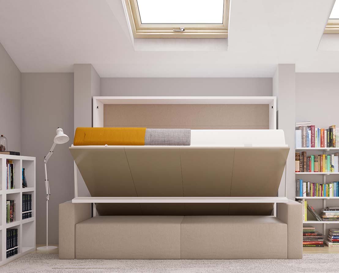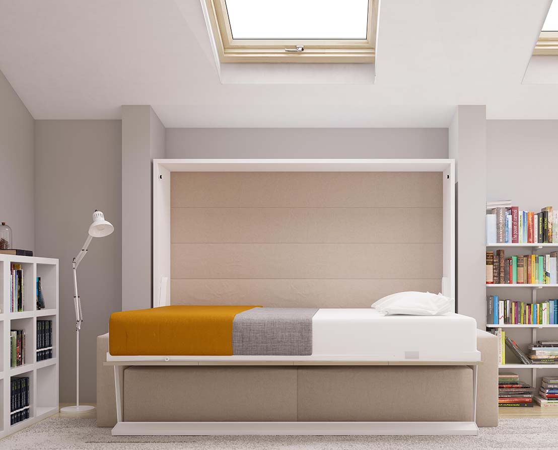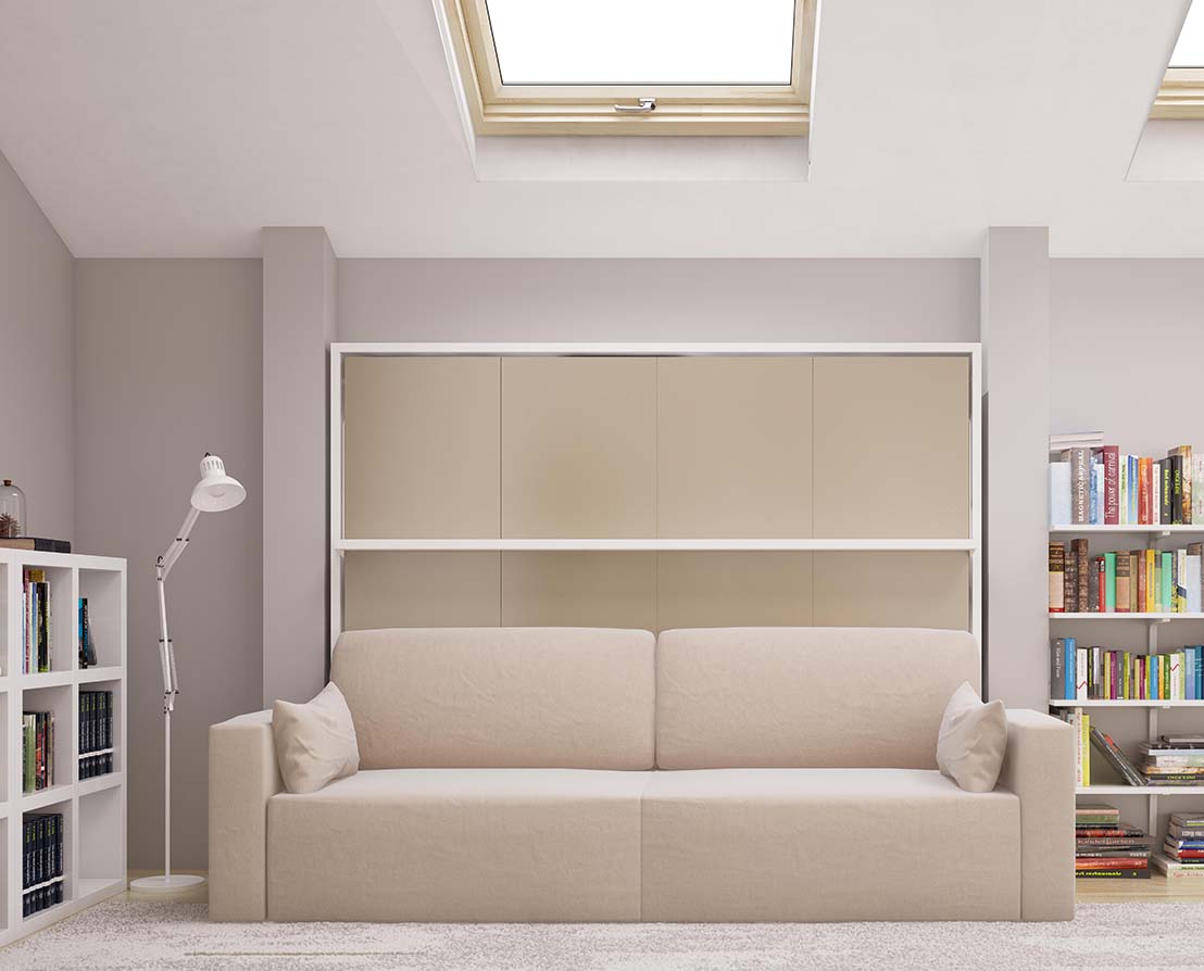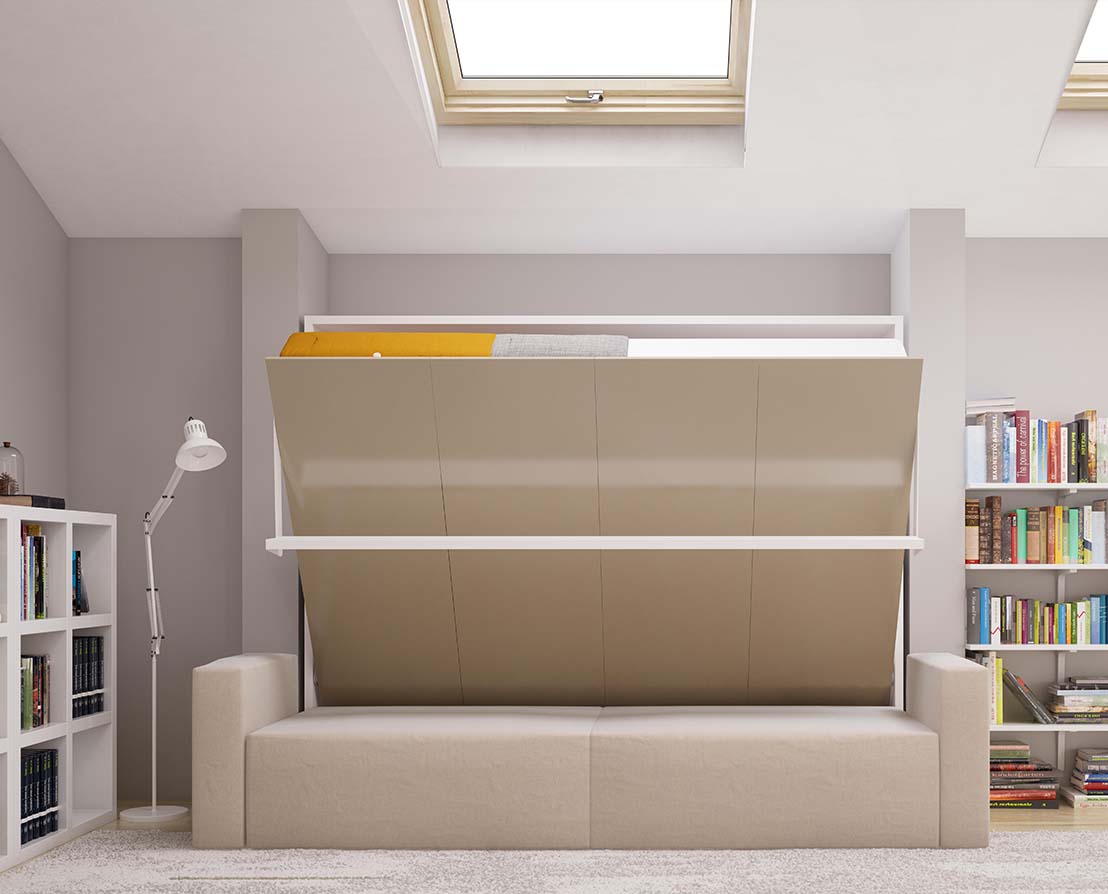 Horizontal-opening queen-size double wall bed module from the Royal Series.