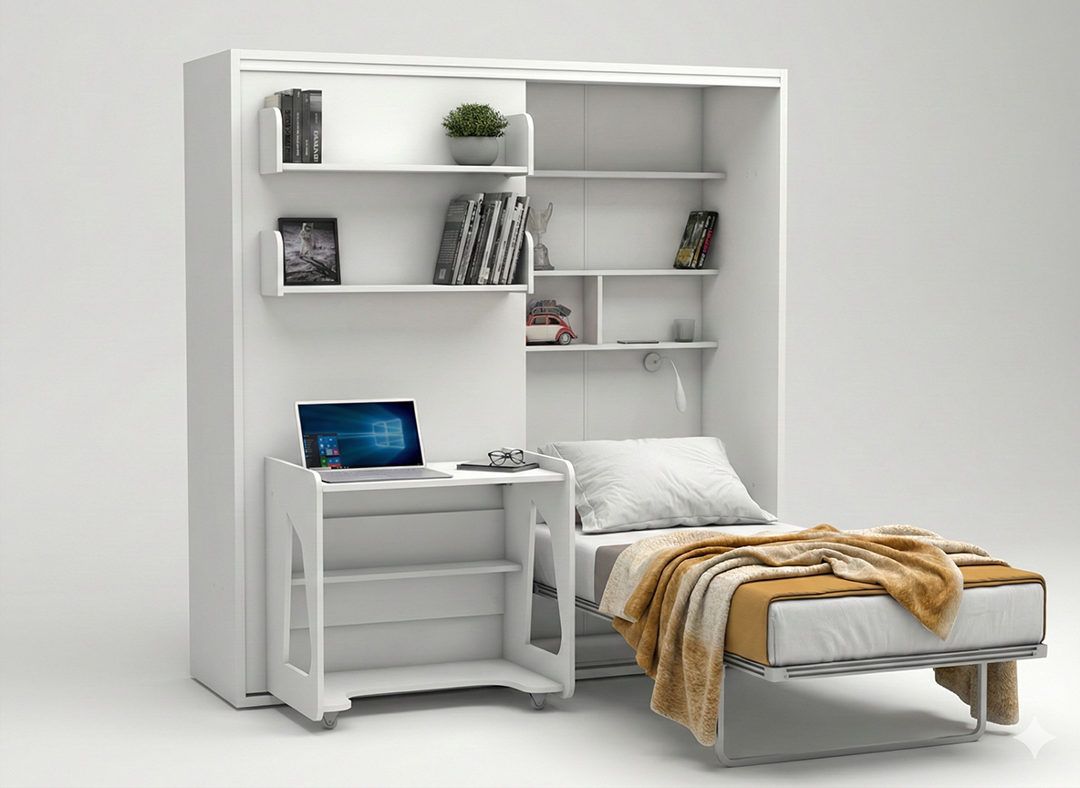 Experience the freedom of spacious living with our innovative wall beds and practical units.